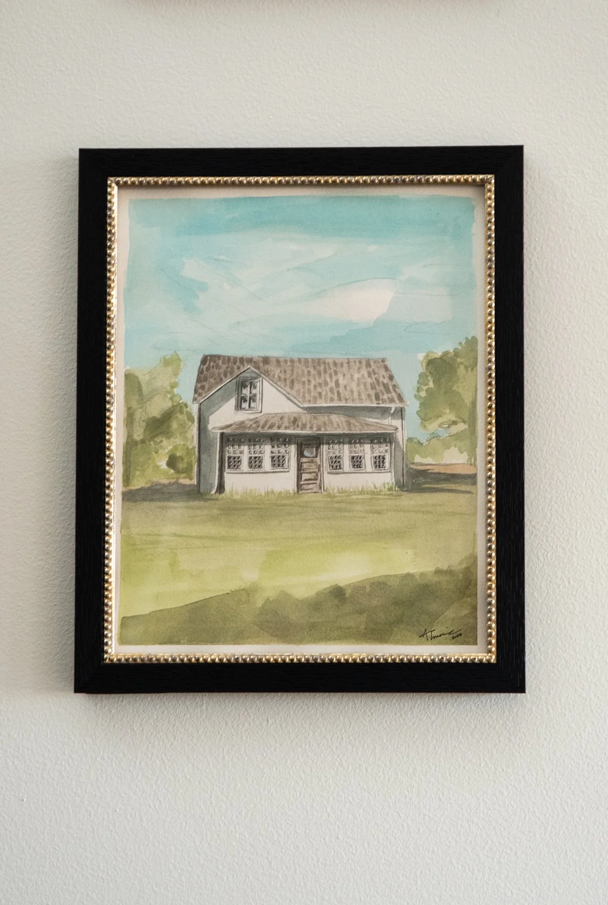 The watercolor painting was gifted to me by a dear friend and was painted by a local artist. It is the original farmhouse that we lived in for two years as our new home was being built. The house still stands, just 30 yards away, but it won’t always be there. The old house is over a century old, and is falling apart, but it is not only part of our story, but of the story of the farm as well as countless others who lived in that home. It symbolizes our desire to live our lives on the farm and to sacrifice and work hard in order to make it happen. It also is a symbol of legacy as well. The farm has lived many lives and we will do our best to ensure it lives many more. How could I not honor it in some small way in our new farmhouse?