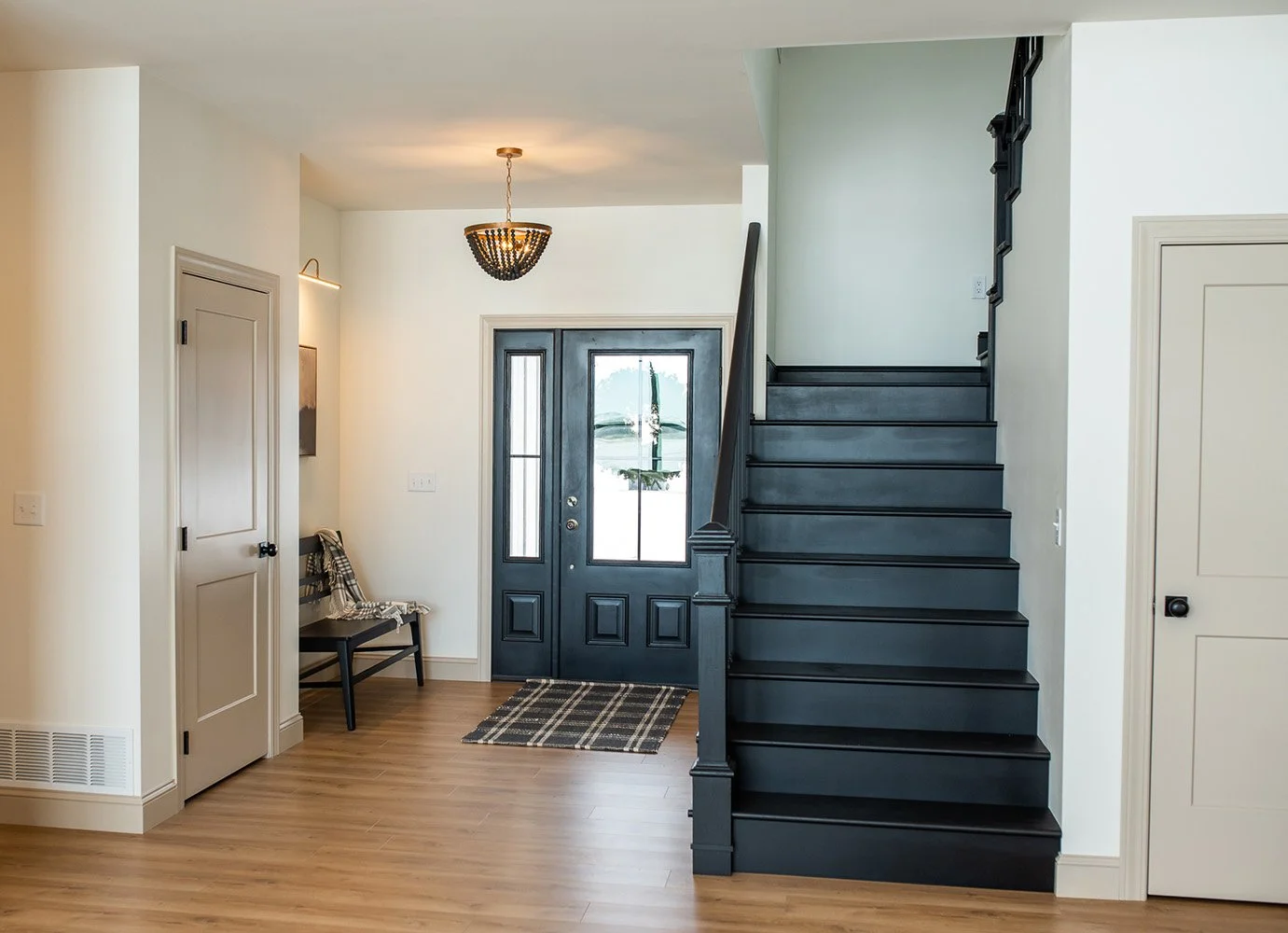 Below is the view from our great room into our kitchen. I keep seeing that open floor plans are becoming less popular and that houses with traditional rooms are making a comeback. We always favored an open concept main room to maximize space and because I hated feeling so far away from the action when I was in the kitchen of our last two homes. This really works well for us and I do still feel like we have set spaces for each “room”. Our great room is really designated by the tall ceiling. Our dining area (not pictured but to the left of the kitchen) has three walls and is only open to the kitchen. Our entry way is designated by the staircase and entryway closet. So although it is open, there is still some structure to it.